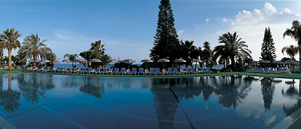 Территория:Конгресс центр сочетает в себе как большое пространство, так и технологичность и комфорт. Конференц-зал “Demetra” – самый большой зал в отеле, может разместить до 400 человек в театральном размещении. Конференц-зал “Ares” может разместить до 160 человек в театральном размещении. Залы Demetra и Ares могут быть объединены, чтобы принять большое количество человек. Имеются 3 небольших комнаты, предназначенные для проведения небольших деловых встреч: Hermes, Aphrodite, Poseidon; - организация и проведение свадеб и других торжественных мероприятий. Кроме того, 4 новые конференц-комнаты Athenaeum 1, 2, 3 и 4 вмещают в себя от 18 до 170 человек. - салон красоты; - прачечная; химчистка - бутики; салон эксклюзивных часов - парикмахерская Toni&Guy; - бизнес-центр (компьютер, Интернет, принтер, копировальный аппарат). Рестораны, бары: - элегантный новый ресторан “The CYAN” с видом на пристань для яхт и предлагает своим посетителям тематические ужины по меню “table d’ote” с местной и международной кухней; - изысканный новый ресторан “Asiachi” с видом на море предлагает деликатесы с востока. Тайская, китайская и японская кухня “a la carte”. Здесь также предлагаются эксклюзивные вина, как местные, так и зарубежные; - “Kalypso Garden Restaurant” находится на панорамной террасе с видом на сады и бассейны. Здесь гостям предоставляется возможность отведать восхитительный завтрак и обед в стиле буфета или a la carte, а также на протяжении всего дня – большой выбор закусок; - итальянский ресторан “La Terrazza”, открытый в летний сезон, обладает захватывающим видом на море и бассейны, освещенные по вечерам, что им придает особую красоту и неповторимость, - все это создает по-настоящему романтическую обстановку. Гостям здесь предлагают насладиться восхитительным ужином в стиле буфета с излюбленными итальянскими блюдами и свежеиспеченной пиццей и только что приготовленной пастой; -таверна “Limanaki Fish”, открытая в летние месяцы, находится на пляже, рядом с пристанью для яхт, была награждена наградой “Time Out Cyprus” в номинации Рыбные рестораны для Гурманов. Декор, обстановка и живописный вид на побережье придают этому месту изысканность и уникальность, и создают ощущение что Вы живете жизнью рыбака. Именно здесь следует попробовать знаменитое рыбное мезе. Таверна открыта только на ужин по меню a la carte; - бар “Petrino” расположен рядом с таверной “Limanaki Fish”, прямо на берегу, откуда по вечерам открывается захватывающий вид на закат. Здесь можно отведать разнообразные местные и зарубежные коктейли и напитки, а также имеется большой выбор закусок; -коктейль-бар ”NuBar” с террасой, расположенный рядом с лобби отеля, приглашает гостей насладиться очаровательными видами моря и садов, а также разнообразными напитками и коктейлями. Здесь гостям предоставляется возможность послушать живую музыку; - пляжный бар “Helios”, названный в честь бога солнца, предлагает большой выбор восхитительных свежевыжатых фруктовых соков, закусок; - бар у бассейна. Все рестораны открыты на завтрак с 6:00 до 10:00, на обед с 12:30 до 15:00 и на ужин с 19:30 до 22:30