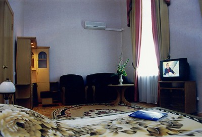 2-местный 2-комнатный номер в корпусе №2 (24 м2) с удобствами (совмещенный санузел с душем). В номере: набор мебели, ТВ, холодильник.