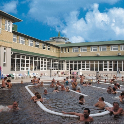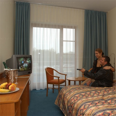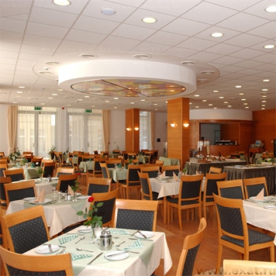 Отель открыт в 2002 году. Сообщается с медицинским центром посредством моста. На территории отеля: собственный плавательный бассейн (с обычной и термальной водой), джакузи, сауна, паровая ванна, солярий, фитнес-центр, аквапарк. Постояльцы отеля имеют бесплатный доступ к spa-комплексу с бассейном под открытым небом и термальным баням. В отеле есть парковка, гараж, аптека, 2 бара (у бассейна, в вестибюле), ресторан с кондиционером (в летний период открыта терраса), сервис в номер. Лечебные процедуры: массаж, оздоровительная гимнастика (индивидуально, в группах, под водой), бальнеотерапия, физиотерапия, лазерный душ и т. д. Есть бизнес-центр (телефакс, фотокопир), конференц-зал на 120 мест.