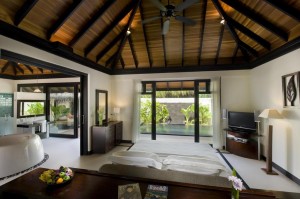 Номера:Всего 83 номера: 22 Beach Villa (150 м2, макс. 3 или 2+2 чел.). Отдельно стоящие виллы на берегу. Открытая ванная комната с ванной и ливневым душем, во внутреннем саду бассейн и солнечная терраса с шезлонгами. Каждая вилла имеет собственную меблированную беседку непосредственно на пляже. 12 Beach Suite (225 м2, макс. 3 или 2+2 чел.). Отдельно стоящие виллы на берегу. Отдельная гостевая и спальная зоны, в ванной комнате ванна-джакузи и душ, во внутреннем дворике бассейн и солнечная терраса с шезлонгами. Каждая вилла имеет собственную оборудованную беседку непосредственно на пляже. 30 Water Villa (146 м2, макс. 3 или 2+2 чел.). Отдельно стоящие виллы в лагуне. Имеют зону гостиной со стеклянной панелью. Частично открытая ванная комната с ванной-джакузи и душем. На террасе бассейн и шезлонги. Прямой спуск в океан. 17 Ocean Villa (146 м2, макс. 3 или 2+2 чел.). Ремонт был произведен в феврале 2010 г. Интерьер вилл выполнен в мальдивском стиле, кровати из тикового дерева. Просторная терраса, отдельная зона гостиной, спальня, частично открытая ванная комната с ванной-джакузи и ливневым душем, сауна, парная, гамак, 42-дюймовый LCD телевизор. 1 Grand Water Pavilion (419 м2, макс. 6 или 6+2 чел.). Отдельно стоящая вилла на сваях в лагуне. Состоит из двух спален, двух ванных комнат с ванной-джакузи и душем. Гостиная, караоке, обеденная терраса на открытом воздухе, большая солнечная терраса с бассейном, сауна, парная. Прямой спуск в океан. 1 Grand Beach Pavilion (693 м2, макс. 6 или 6+2 чел.). Отдельно стоящая вилла на берегу. Состоит из двух спален, столовой, отдельной гардеробной, две ванных комнаты на открытом воздухе, сауна, ванная, массажная комната, джакузи, бассейн, зона отдыха и развлечений. Во всех номерах кровати king size, раздельных кроватей (twin) нет. В водных виллах не рекомендуется размещение с детьми до 12 лет.