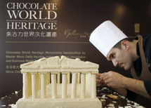 Итальянский шоколатье Мирко Делла Вечия (Mirco Della Vechia) создал серию реплик всемирного наследия, памятники из белого шоколада.