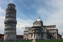 Справка: Пизанская башня была построена в 12 веке. Его высота составляет 54 метра, а подъем – 3 метра 99 сантиметров.